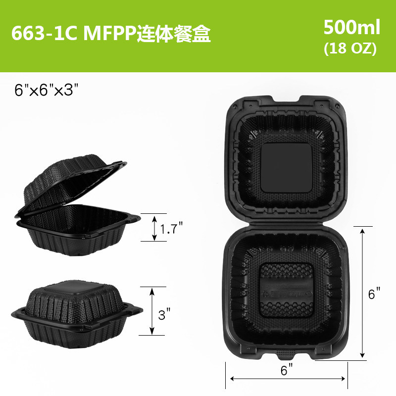 6''X6''X3'' Paket Servis MFPP Menteşeli Kapaklı Mikrodalga Kap 18oz 500ml